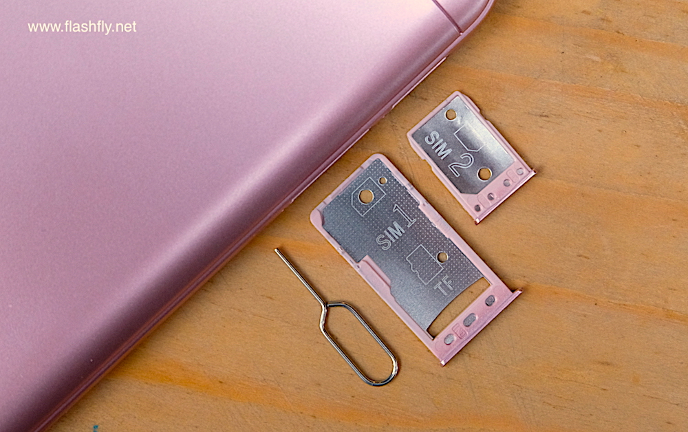 ส่วนฝั่งซ้ายจะพบกับถาดใส่ซิมการ์ด 2 ซิม และยังใส่การ์ด microSD ได้อีกด้วย โดยไม่ต้องไปแย่งใช้กับช่องซิมสอง