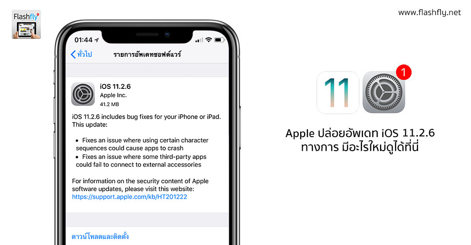 เช้าวันนี้ Apple ได้ปล่อย iOS 11.2.6 เวอร์ชั่นใหม่ล่าสุดออกมา ซึ่งหลักๆเป็นแก้บั้กภาษา เตลูกู (Telugu) ที่ใช้กันในรัฐทางตอนใต้ของอินเดีย เมื่อใช้งานส่งข้อความหรือแชตผ่านแอพต่างๆส่งผลทำให้เครื่องค้าง ทั้ง iPhone ,Apple Watch รวมถึงเครื่อง Mac โดยตัวไฟล์มีขนาดเล็กเพียง 41.2MB เท่านั้น