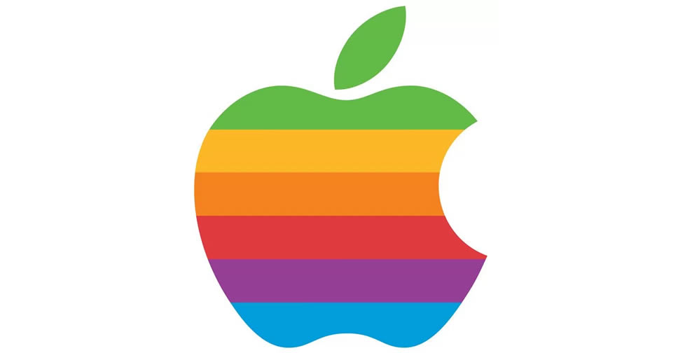 โลโก้ Apple สีรุ้ง ถูกนำมาใช้เป็นโลโก้ประจำบริษัทตั้งแต่ปี 1977 จนถึงวันที่ 26 สิงหาคม 1999 ออกแบบโดย Rob Janoff ถูกใช้เป็นต้นแบบของโลโก้ Apple ในยุคถัดมาจนถึงปัจจุบัน และถือเป็นโลโก้ Apple ที่ผู้บริโภคจดจำได้มากที่สุดด้วยสีสันที่หลากหลายของสีเขียว, สีเหลือง, สีส้ม, สีแดง, สีม่วง และสีฟ้า