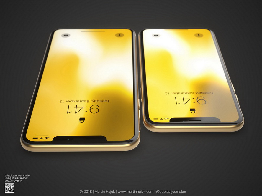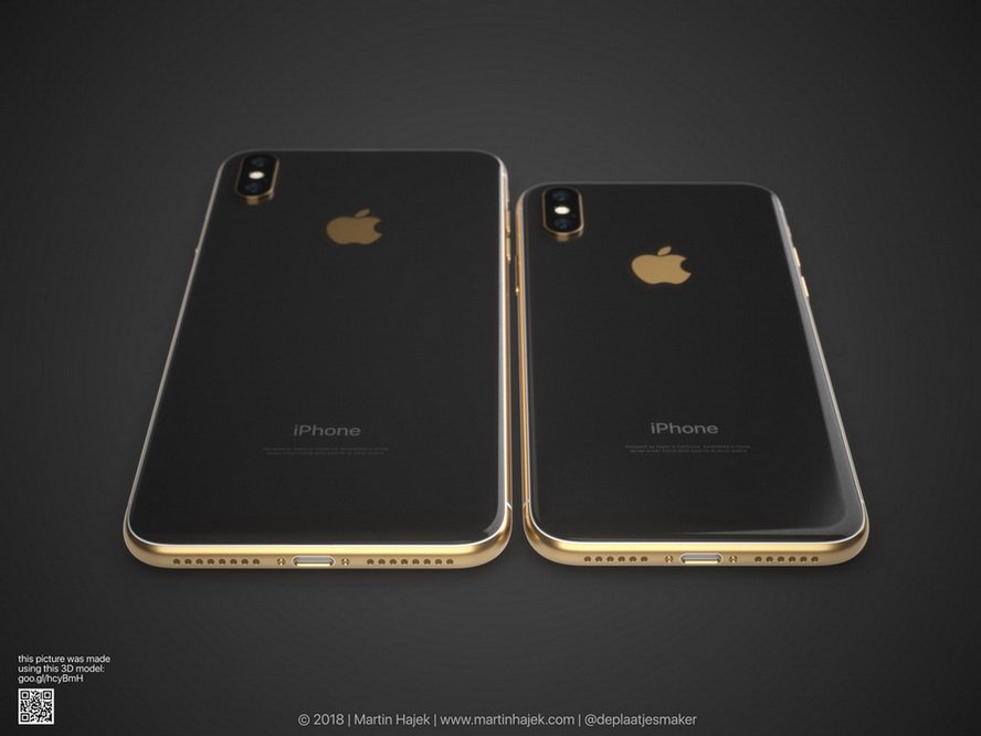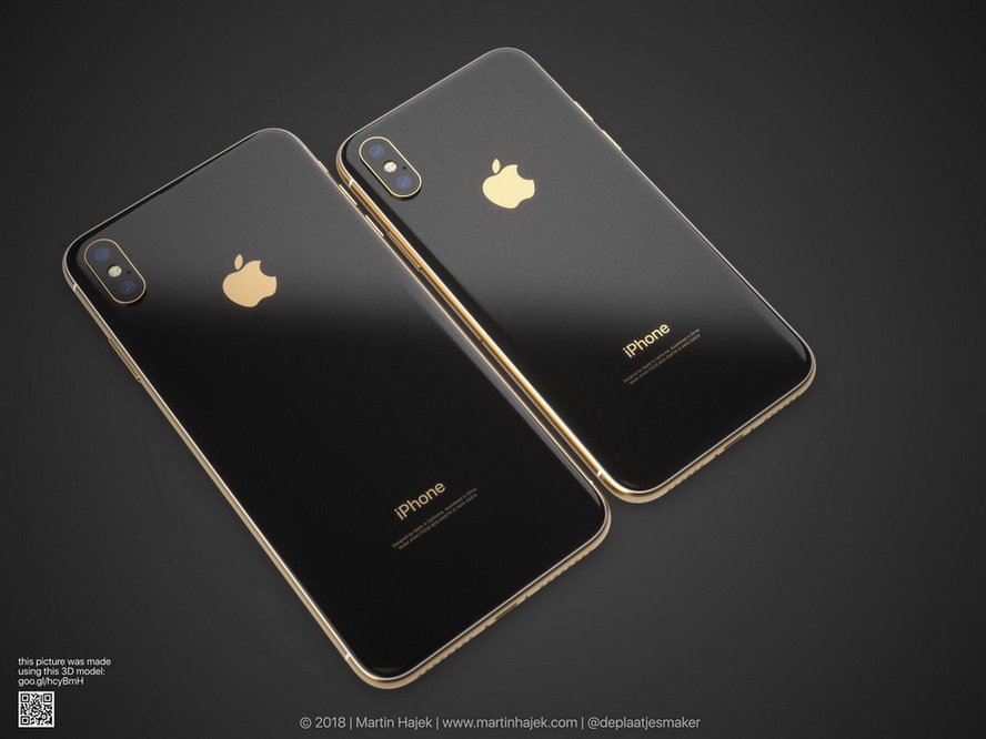 Martin Hajek นำเสนอคอนเซ็ปต์ iPhone X เจเนอเรชั่นที่ 2 กับ iPhone X Plus ในบอดี้สีทอง โดยการออกแบบยังเหมือนกับ iPhone X รุ่นปัจจุบัน ยกเว้น iPhone X Plus ที่ถูกขยายร่างให้ใหญ่ขึ้น เพราะใช้จอแสดงผล 6.5 นิ้ว