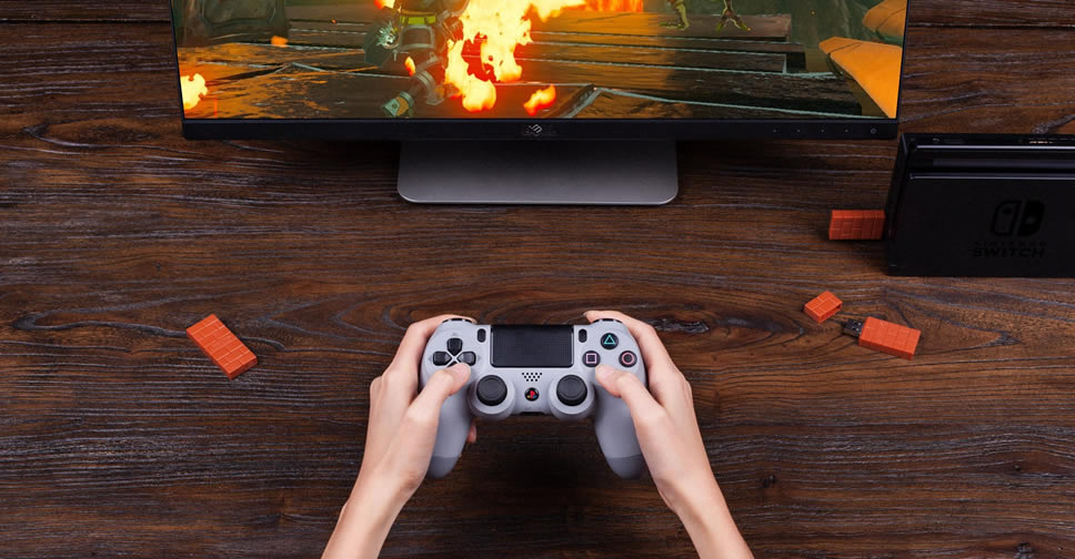 เมื่อเชื่อมต่อ 8Bitdo Wireless Bluetooth Adapter เข้ากับ Nintendo Switch จะสามารถใช้คอนโทรลเลอร์ DualShock 4 ควบคุมเกมได้ นอกจากนี้ยังรองรับคอนโทรลเลอร์จากคอนโซลอื่นๆ ด้วย ไม่ว่าจะเป็น PS3, Wii Mote หรือ Wii U Pro