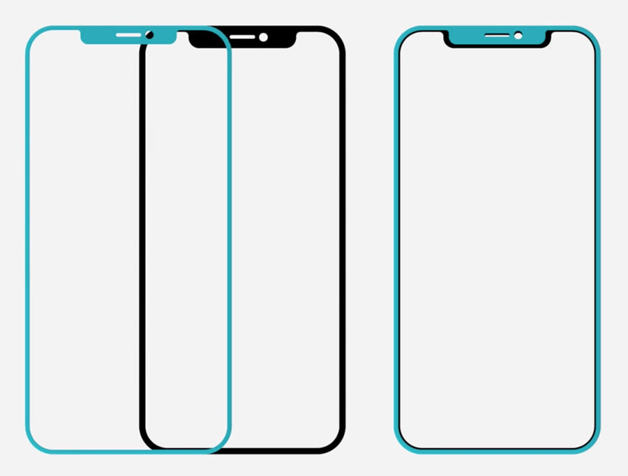 เทียบขนาดขอบจอและรอยบาก ระหว่าง iPhone X (สีดำ) กับ iPhone รุ่นใหม่