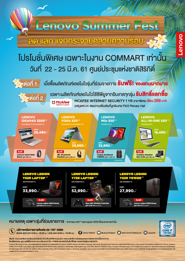 Lenovo Summer Fest โปรโมชันคลายร้อน เตรียมพบกับสินค้าราคาพิเศษกลุ่ม Consumer และ Think ที่งาน Commart 2018