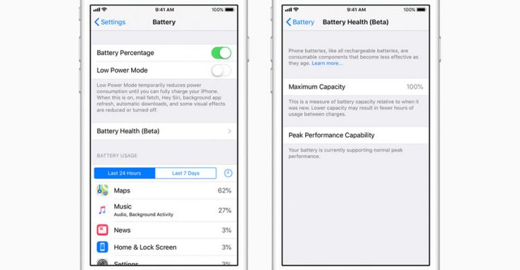 หลังจากเจ้าของ iPhone อัพเดทเป็น iOS 11.3 แล้ว (รองรับ iPhone 6 หรือรุ่นใหม่กว่า) สามารถเข้าไปตรวจสอบสุขภาพของแบตเตอรี่ได้ที่ การตั้งค่า > แบตเตอรี่ > ประสิทธิภาพของแบตเตอรี่ (เบต้า)