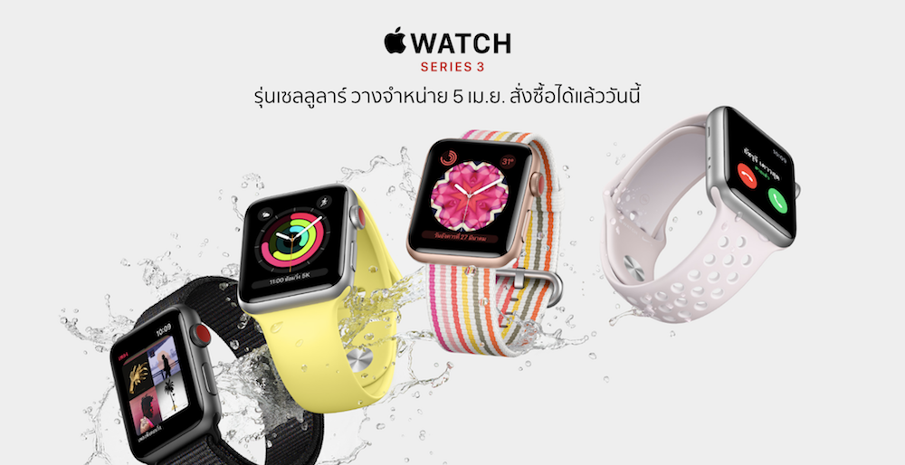 หลังจากที่ทาง Truemove H ได้ประกาศวางจำหน่าย Apple Watch Series 3 รุ่น GPS+Cellular เป็นค่ายแรกในประเทศไทยไปก่อนหน้าแล้ว ล่าสุดทาง Apple ก็ได้เปิดให้สั่งซื้อ Apple Watch Serties 3 รุ่น GPS+Cellular อย่างเป็นทางการแล้วทั้งรุ่น อะลูมิเนียม ,สแตนเลสสตีล และ Edition โดยมีราคาเริ่มต้นที่ 14,900 บาท ใช้เวลาจัดส่ง 2-4 วันทำการ ใครที่สนใจสามารถเข้าจับจองรุ่นโปรดได้แล้ววันนี้ที่ https://www.apple.com/th/apple-watch-series-3/