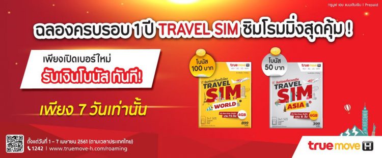 ซิมเติมเงินพร้อมใช้ต่างประเทศ TrueMove H Travel SIM แจกโบนัสฟรี ฉลองครบรอบ 1 ปี เมื่อเปิดใช้งาน 1 – 7 เมษายนนี้