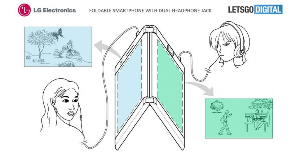 LG จดสิทธิบัตรสมาร์ทโฟนพับได้ มี 2 หน้าจอ แบตเตอรี่ 2 ก้อน เสียบแจ็คหูฟังได้ 2 ช่อง