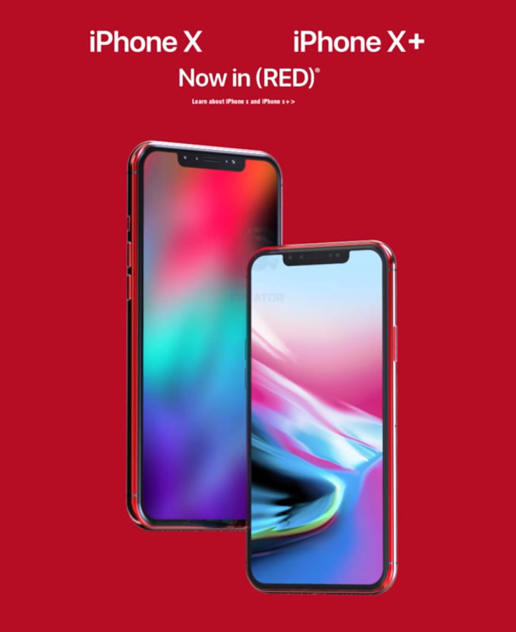 ถึงแม้ Apple จะไม่ได้เปิดตัว iPhone X เวอร์ชั่นพิเศษ (PRODUCT)RED Special Edition ออกมาพร้อมกับ Phone 8 และ iPhone 8 Plus แต่ก็ไม่ได้หยุดจินตนาการของดีไซเนอร์ จึงได้สร้าง iPhone X บอดี้สีแดงขึ้นมา พร้อมกับ iPhone X Plus ซึ่งหวังว่า Apple จะผลิตออกมาในอนาคต