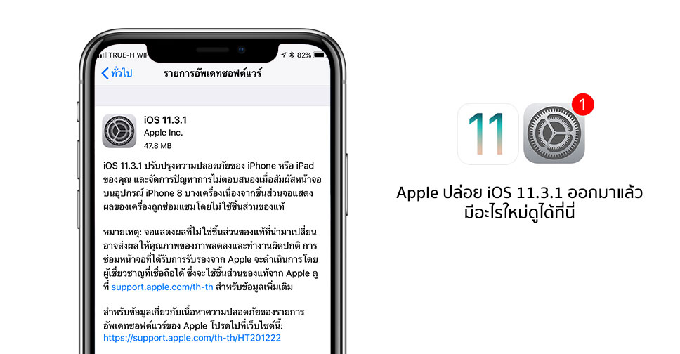 iOS 11.3.1 ปรับปรุงความปลอดภัยของ iPhone หรือ iPad ของคุณ และจัดการปัญหาการไม่ตอบสนองเมื่อสัมผัสหน้าจอบนอุปกรณ์ iPhone 8 บางเครื่องเนื่องจากชิ้นส่วนจอแสดงผลของเครื่องถูกซ่อมแซมโดยไม่ใช้ชิ้นส่วนของแท้