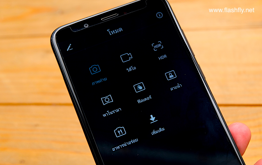 Beauty Mode สำหรับถ่ายภาพใบหน้าให้สวยเนียนและสว่างยิ่งขึ้น ใช้ได้ทั้งกล้องหลังและกล้องเซลฟี่ สามารถปรับระดับความสวยงามได้ตามต้องการ เพียงเลื่อนแถบ Beauty level บนหน้าจอ
