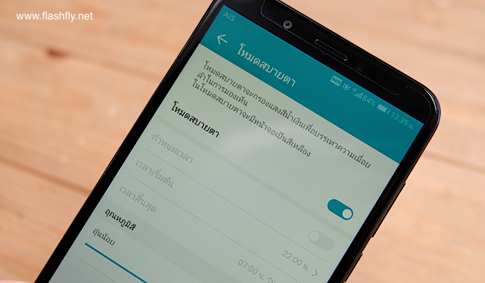 Eye comfort ฟีเจอร์ถนอมดวงตา สำหรับคนที่ชอบจ้องหน้าจอเป็นเวลานาน โดยเฉพาะเวลากลางคืน Eye comfort จะช่วยกรองแสงสีฟ้าที่อาจส่งผลร้ายกับดวงตาของคุณได้ หากใช้งานแอพที่ต้องจ้องหน้าจอเป็นเวลาโดยเฉพาะการดูทีวีย้อนหลัง หรือวีดีโอออนไลน์ ควรเข้าไปที่ Settings > Display > Eye comfort เพื่อเปิดใช้งานโหมดถนอมดวงตา และยังสามารถปรับอุณหภูมิสีของหน้าจอได้ในส่วนนี้เช่นเดียวกัน