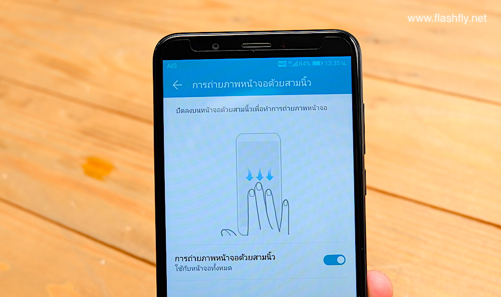 ด้วยอัตราส่วนภาพ 18:9 ที่ให้ความยาวหรือสูงกว่าอัตราส่วนเดิม จึงแสดงรายละเอียดของแอพพลิเคชั่นต่างๆ ได้มากกว่าบนหน้าจอเดียว ส่วนแอพพลิเคชั่นที่ไม่สนับสนุนการแสดงผลแบบเต็มหน้าจอ ด้านล่างจะมีแถบคำสั่ง Full screen display ให้แตะใช้งานเพื่อปรับการแสดงผล ทั้งนี้ ผู้ใช้งานสามารถเข้าไปตั้งค่าการแสดงผลแบบ Full screen display ของแอพลิเคชั่นต่างๆ ได้ที่เมนู Settings > Display > Full screen display