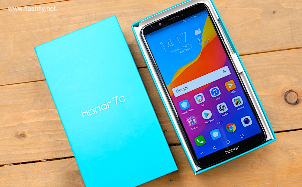 โดยในวันนี้ทีมงาน @flashfly ก็จะมาทำการรีวิว Honor 7C พร้อมทดสอบใช้งานจริงมาฝากกันอีกเช่นเคย โดยเริ่มจากแกะกล่องออกมาก่อนก็จะพบอุปกรณ์ที่แถมมาในกล่องนอกจากตัวเครื่อง มีเพียงคู่มือการใช้งานเบื้องต้น ที่ชาร์จแบบพกพา สาย Micro USB และเข็มจิ้มถาดใส่ซิมเท่านั้น ไม่มีชุดหูฟังและเคสใสแถมมาให้
