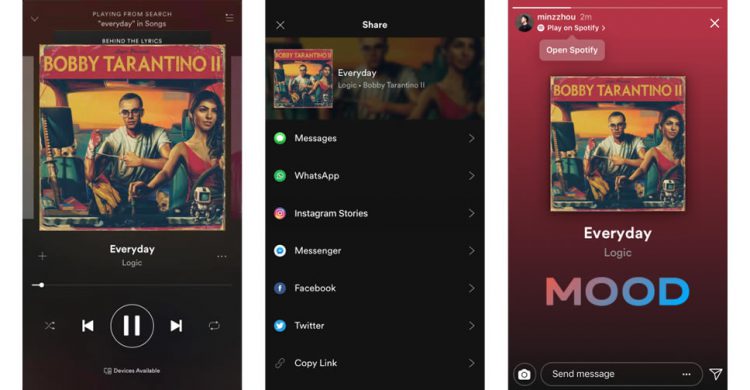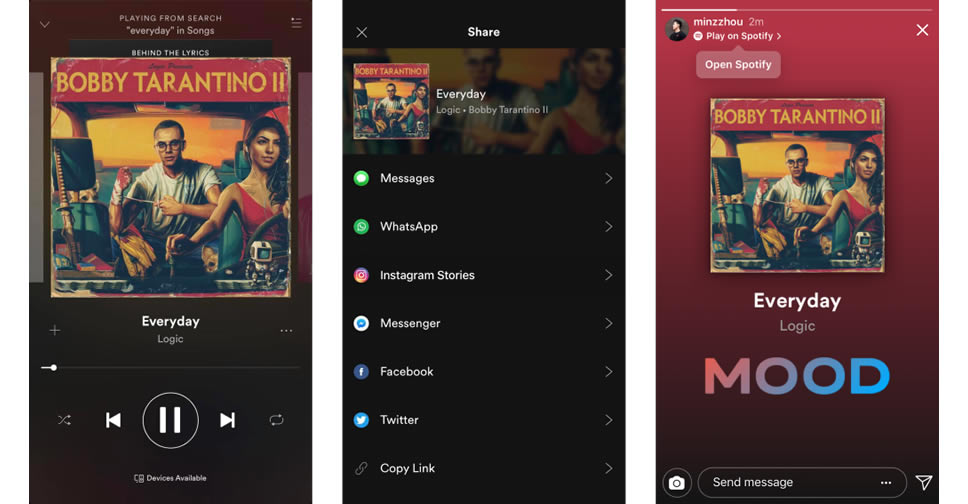 เริ่มจากการเพิ่มตัวเลือกสำหรับการแชร์คอนเท้นต์จากแอพ Spotify หรือ GoPro ลงใน Stories ได้โดยตรงเพียงแตะปุ่มแชร์ในแอพ Spotify หรือ GoPro คอนเท้นต์ก็จะถูกดึงเข้าไปในกล้องของ Instagram ทันที จากนั้นผู้ใช้งานสามารถแก้ไข เพิ่มไปยัง Stories หรือ ส่งผ่าน Direct Messaging