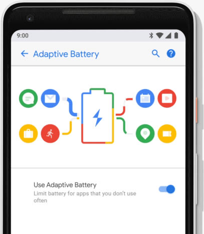 Android P ได้รับการพัฒนาให้มีความฉลาดมากขึ้น เริ่มจากฟีเจอร์ Adaptive Battery ที่ใช้ Machine Learning เรียนรู้พฤติกรรมการใช้งานแอพพลิเคชั่นต่างๆ ของคุณ เพื่อจัดลำดับความสำคัญของพลังงานแบตเตอรี่ ซึ่งจะช่วยปรพหยัดพลังงานของแบตเตอรี่มากขึ้น จากการทดลองของ Google พบว่าช่วยลดการทำงานของชิปประมวลผลได้ถึง 30%