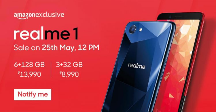 OPPO เปิดตัวสมาร์ทโฟนรุ่นแรกภายใต้แบรนด์ย่อย Realme จึงใช้ชื่อรุ่นว่า Realme 1 โดยมีดีไซน์และสเปกคล้ายกับ OPPO F7 Diamond Black และจะวางจำหน่ายเฉพาะร้านค้าออนไลน์ Amazon ของประเทศอินเดียเท่านั้น เริ่มตั้งแต่วันที่ 25 พฤษภาคม 2018 เป็นต้นไป
