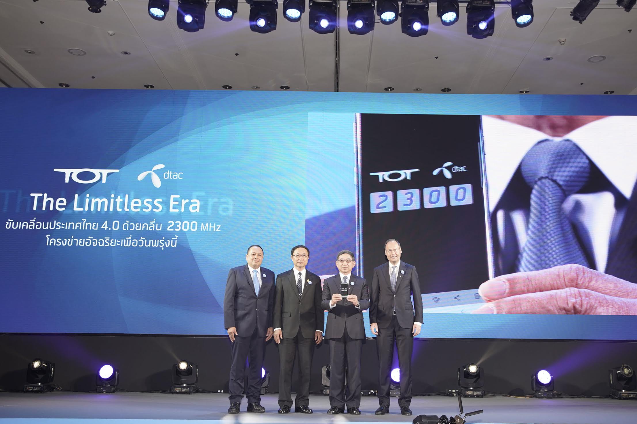ดร. มนต์ชัย หนูสง กรรมการผู้จัดการใหญ่ บมจ.ทีโอที  กล่าวว่า “สัญญาทางธุรกิจและความร่วมมือระหว่างทีโอทีและดีแทคในการใช้งานคลื่นความถี่ 2300 MHz บนแบนด์วิดท์ที่กว้างที่สุดถึง 60 MHz (2310 – 2370 MHz) เพื่อให้บริการการสื่อสารความเร็วสูงมิติใหม่ของประเทศ เป็นการปักหมุดความก้าวหน้าครั้งสำคัญที่สุดของอุตสาหกรรมโทรคมนาคม และนับเป็นครั้งแรกของประเทศไทยที่นำเทคโนโลยีล่าสุดของโลก 4G LTE-TDD มาให้บริการอินเทอร์เน็ตความเร็วสูงทั้งบนโทรศัพท์เคลื่อนที่ และอินเทอร์เน็ตไร้สายประจำที่ (Fixed Wireless broadband) เพื่อขยายบริการให้ครอบคลุมชุมชนหรือครัวเรือนต่างๆ ในพื้นที่ห่างไกลทั่วประเทศ ช่วยลดความเหลื่อมล้ำของคนไทยในการเข้าถึงข้อมูลข่าวสารและใช้ประโยชน์จากอินเทอร์เน็ตอย่างทั่วถึงและเท่าเทียม ที่สำคัญความร่วม มือครั้งประวัติศาสตร์นี้จะเป็นการยกระดับโครงสร้างพื้นฐานการสื่อสารโทรคมนาคมของประเทศไทยให้ก้าวทันกับนานาประเทศตามนโยบาย รัฐบาลที่จะนำพาประเทศก้าวสู่  “ไทยแลนด์ 4.0” ด้วยการนำเทคโนโลยีดิจิทัลเข้ามามีบทบาทสำคัญในการขับเคลื่อนเศรษฐกิจและสังคม เพื่อส่งเสริมเศรษฐกิจฐานรากของประเทศ ให้เข้มแข็งและเพิ่มขีดความสามารถในการแข่งขันในเวทีโลก  โดยบริการคลื่น 2300 MHz นับเป็นกุญแจสำคัญต่อความสำเร็จในอนาคตของระบบโทรคมนาคม และระบบดิจิทัลในประเทศไทย”