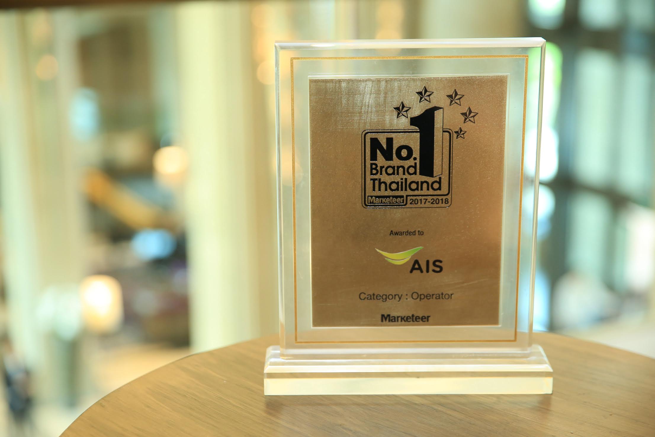 เอไอเอส โดย นางศิวลี บูรณสงคราม ผู้จัดการส่วนงานบริหารแบรนด์ รับรางวัล No.1 Brand Thailand 2018 รางวัลแบรนด์ยอดนิยมอันดับ 1 ด้าน Mobile Operator  จัดมอบโดยนิตยสาร Marketeer ตอกย้ำความสำเร็จของเอไอเอสในการเป็น Digital Life Service Provider ที่ดีที่สุดในประเทศไทย และเป็นเครือข่ายอันดับ 1 ในใจผู้บริโภคอย่างแท้จริง โดยมี นายสนธิรัตน์ สนธิจิรวงศ์  รัฐมนตรีว่าการกระทรวงพาณิชย์ และนายเพิ่มพล โพธ์เพิ่มเหม บรรณาธิการ นิตยสาร Marketeer เป็นผู้มอบรางวัล
