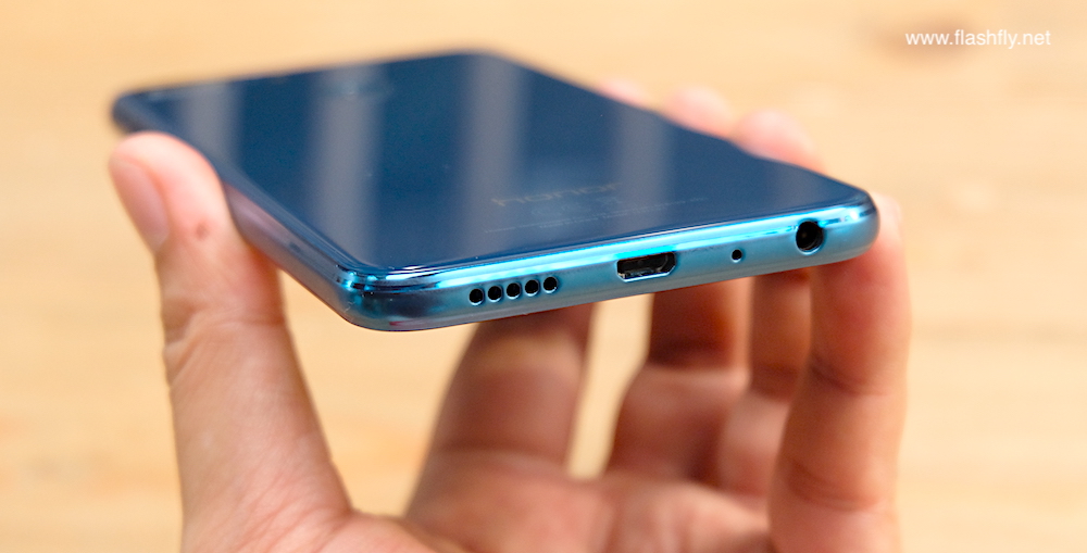 ด้านล่างมีช่องเสียบแจ็คหูฟัง ไมโครโฟนตัวหลัก พอร์ตเชื่อมต่อ Micro USB และ ลำโพง