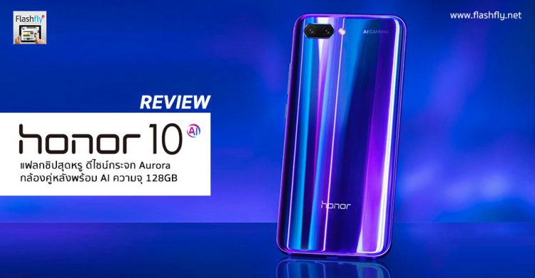 Honor 10 จัดอยู่ในตระกูล ซีรี่ส์ N ซึ่ง Honor ได้แบ่งสมาร์ทโฟนออกเป็นทั้งหมด 4 ซีรี่ส์ (ซีรี่ส์ View, ซีรี่ส์ N, ซีรี่ส์ X และ ซีรี่ส์ Lite) โดย ซีรี่ส์ N นั้นจัดเป็นรุ่นที่มีคุณภาพสูงสุดของ Honor ที่โดดเด่นทั้งในด้านการใช้งานและความสวยงามของตัวเครื่อง ซึ่งตอนนี้ทีมงาน @flashfly ก็ได้ตัวเครื่อง Honor 10 สีดำมิดไนท์แบล็ก (Midnight Black) มาอยู่ในมือเป็นที่เรียบร้อย โดยเราจะมาดูกันที่ตัวกล่องจะเป็นสีขาวมีเลข 10 สีฟ้าที่เป็นชื่อรุ่นอยู่ตรงกลาง ส่วนโลโก้ Honor อยู่ด้านล่าง