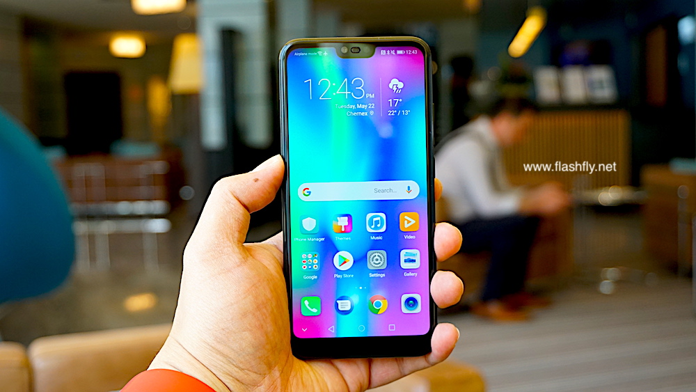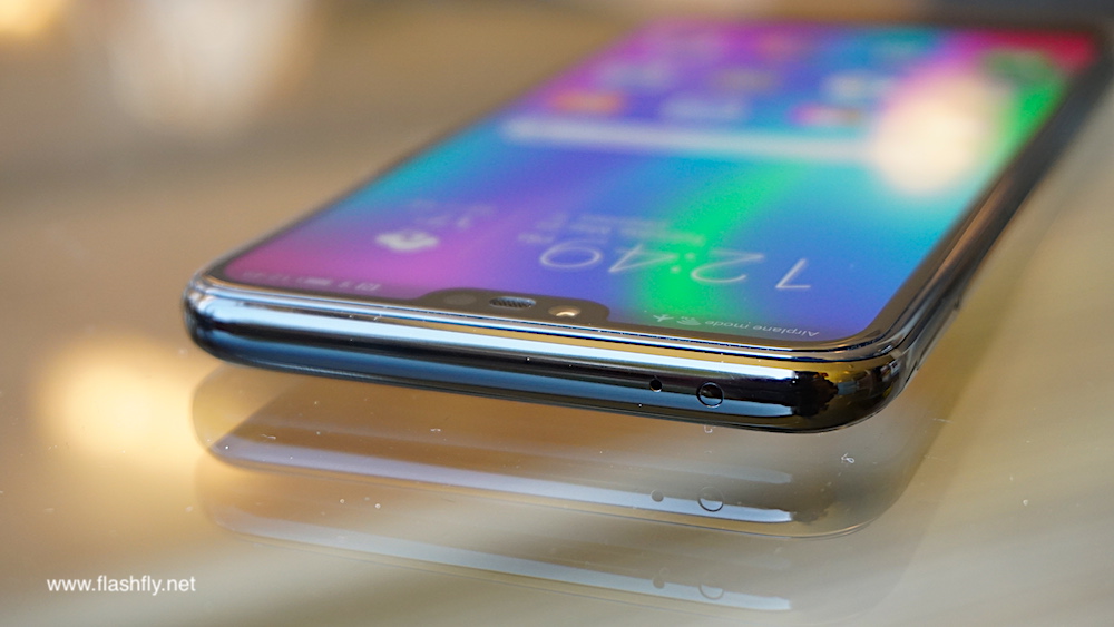 ที่ขอบจอด้านบนมีรอยบากตามเทรนสมัยนิยมของสมาร์ทโฟนในปีนี้ แต่สามารถซ่อนได้ ด้วยการตั้งค่าให้แสดงแถบสีดำคาดทับไว้ได้