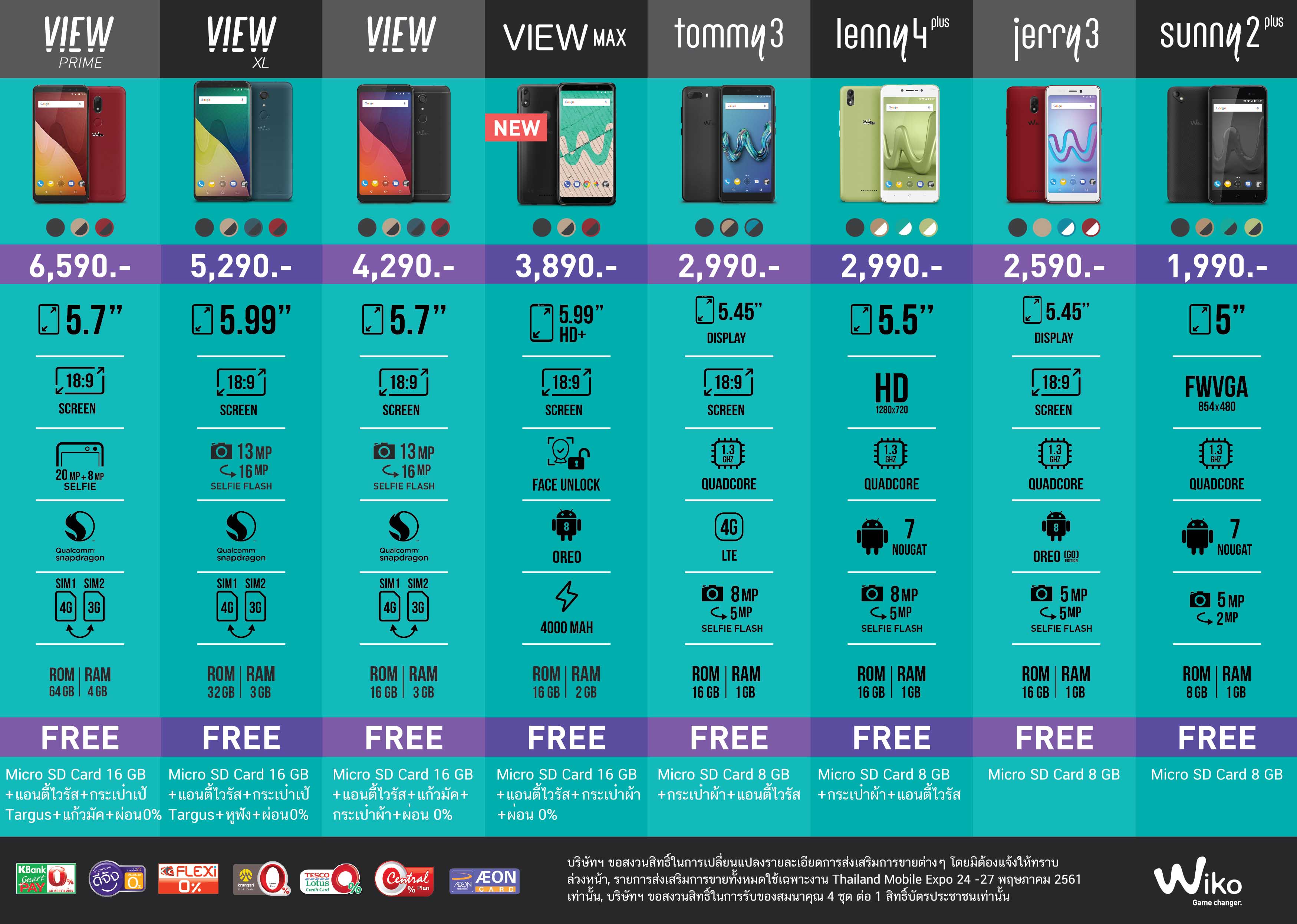 พร้อมพบกับสมาร์ทโฟนรุ่นต่าง ๆ ของวีโก อาทิ รุ่นพี่สเปคดี ราคาคุ้มค่า อย่าง View Prime, View XL, View และรุ่นน้องสเปคครบ ราคาสุดคุ้ม อย่าง Tommy3, Lenny4 Plus, Jerry3, Sunny2 Plus ที่บูธวีโก ในงาน “Thailand Mobile Expo 2018” ระหว่างวันที่ 24 – 27 พฤษภาคมนี้ ที่ศูนย์การประชุมแห่งชาติสิริกิติ์ ติดตามรายละเอียดเพิ่มเติมได้ที่ www.facebook.com/WikoThailand