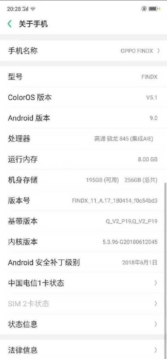 พร้อมกันนี้ แหล่งข่าวยังได้เปิดเผยสเปกออกมาด้วย ซึ่งก็คล้ายกับข้อมูลเดิมที่มีการแชร์ออกมาก่อนหน้านี้ โดยยืนยันว่า OPPO Find X จะมากับชิปประมวลผล Qualcomm Snapdragon 845 ความจำ RAM 8GB จับคู่กับ ROM 256GB และยังระบุว่า Find X ทำงานบน Android 9.0 สวมทับด้วย ColorOS 5.1 ซึ่งยากที่จะเป็นไปได้ เพราะ OPPO Find X กำลังจะเปิดตัวในวันที่ 19 มิถุนายนนี้ ส่วน Android 9.0 หรือ Android P ยังไม่พร้อมใช้งานจนกว่าจะถึงเดือนกันยายน 2018