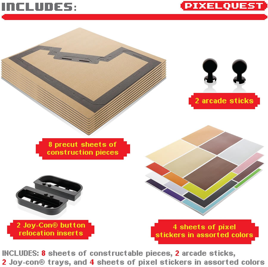 Nyko Retro Acrade Kit ประกอบไปด้วยกระดาษแข็ง 8 แผ่น สำหรับประกอบเป็นตู้เกมอาร์เคด, เบ้ารอง Joy-Con 2 อัน, จอยสติ๊ก 2 อัน และสติกเกอร์สำหรับตกแต่งตู้เกมเพื่อเพิ่มความสวยงาม