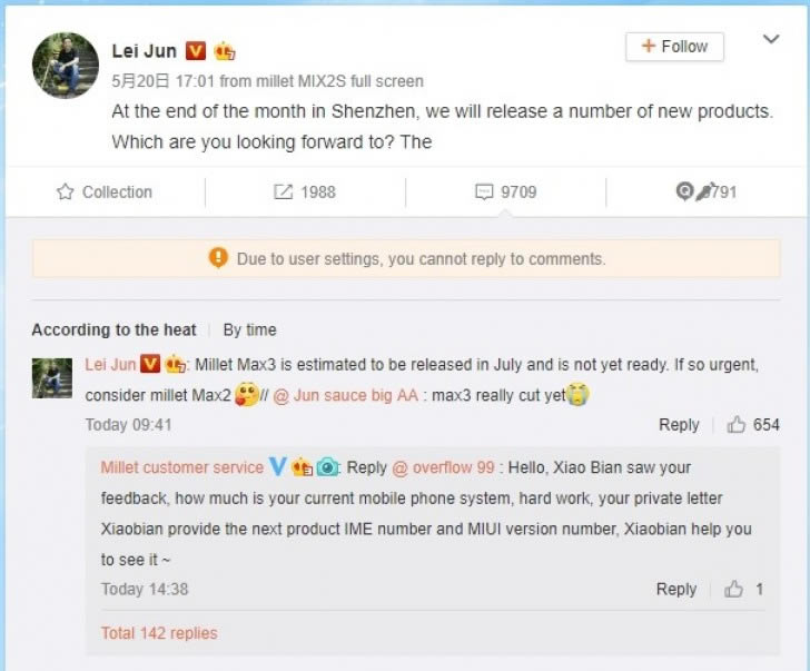 ก่อนหน้านี้ Lei Jun ซีอีโอของ Xiaomi เคยออกมาเปิดเผยผ่านบัญชี Weibo ว่า Xiaomi Mi Max 3 จะพร้อมเปิดตัวทางการในเดือนกรกฎาคมนี้