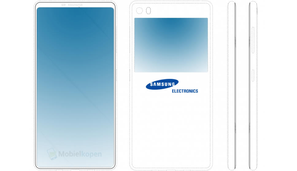 สิทธิบัตรล่าสุดของ Samsung แสดงให้เห็นแนวคิดการติดตั้งจอแสดงผลเพิ่มเติมไว้ที่ด้านหลังของสมาร์ทโฟน Galaxy ที่อาจจะออกมาในอนาคต โดยจอแสดงผลหลักยังคงใช้ดีไซน์ Infinity Display ซึ่งมีขอบจอที่บางลงกว่าสมาร์ทโฟน Galaxy ในปัจจุบัน โดยเฉพาะไม่มีขอบจอด้านล่างอีกต่อไปแล้ว แต่ยังคงมีขอบจอด้านบนสำหรับติดตั้งเซ็นเซอร์ต่างๆ รวมถึงลำโพงหูฟัง