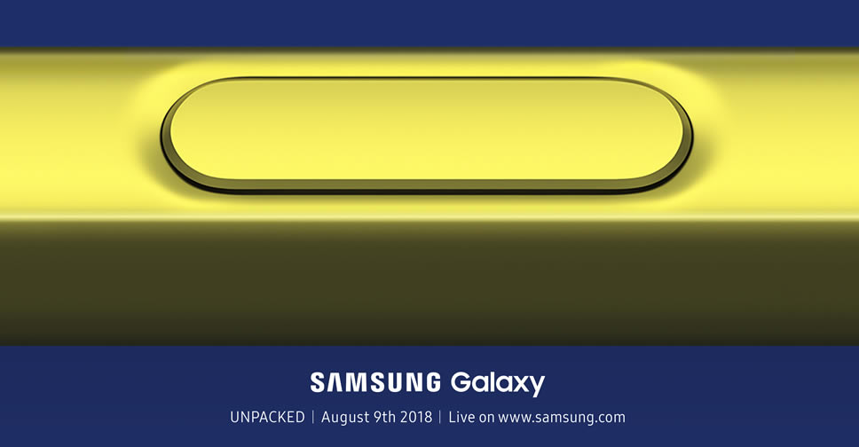 Samsung ยืนยันการจัดงาน Samsung Galaxy Unpacked ในวันที่ 9 สิงหาคมนี้ ซึ่งแน่นอนว่าจะเป็นงานเปิดตัวสมาร์ทโฟนระดับพรีเมี่ยม Galaxy Note 9 พร้อมปล่อยวีดีโอทีเซอร์ที่แสดงให้เห็นปากกา S Pen สีเหลืองทอง นั่นหมายถึงบอดี้ของ Galaxy Note 9 ก็จะใช้เฉดสีเดียวกันด้วย