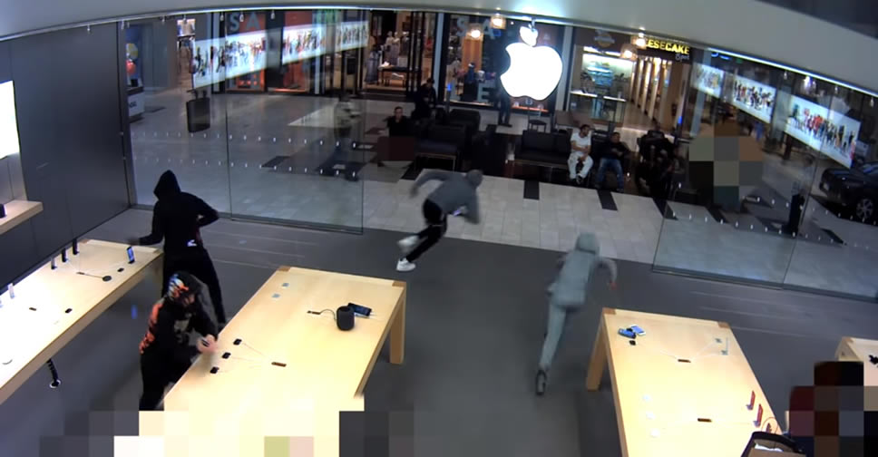 Apple Store กลายเป็นเป้าหมายของกลุ่มคนร้าย เนื่องจากผลิตภัณฑ์ของ Apple มีราคาค่อนข้างสูง นับตั้งแต่ปี 2016 จนถึงปัจจุบัน Apple Store ถูกโจรกรรมไปแล้วมากกว่า 5 ครั้ง