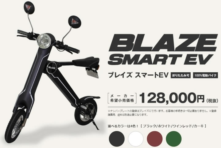 Blaze ผู้ผลิตในประเทศญี่ปุ่น เปิดตัวรถจักรยานยนต์ไฟฟ้า Blaze Smart EV ที่มีจุดเด่นที่ขนาดกะทัดรัดและยังพับได้ เพิ่มความคล่องตัวสำหรับการเดินทางในเมือง โดยใช้พลังงานไฟฟ้า 100% จึงเป็นมิตรต่อสิ่งแวดล้อม และบำรุงรักษาง่ายกว่ารถจักรยานยนต์ทั่วไป