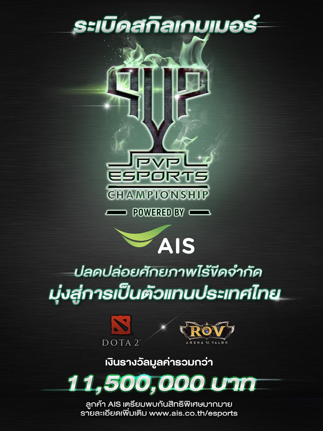 กิจกรรมการแข่งขัน E-Sports ที่จัดขึ้นโดย AIS ในประเทศไทย ทั้งในส่วนของ PC GAME และ Mobile Game เพื่อหาทีมผู้ชนะทั้ง 2 ประเภท เป็นตัวแทนประเทศไทย ไปแข่งขันต่อในระดับภูมิภาคในรายการ “PVP E-Sports Championship” ที่ประเทศสิงคโปร์