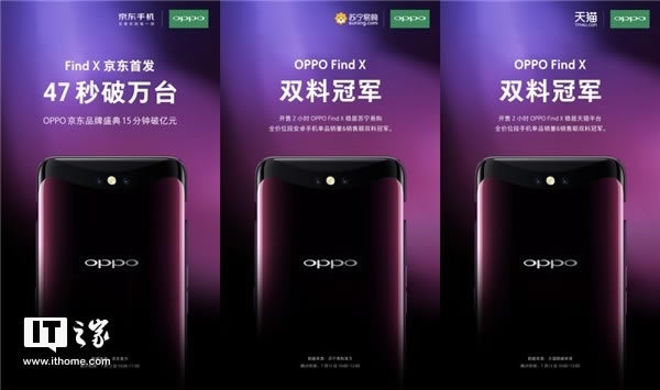 โดยเฉพาะร้าน Jingdong (JD.com) สามารถขาย OPPO Find X ได้ถึง 10,000 เครื่อง ในเวลาเพียง 47 วินาที ซึ่งนั่นหมายถึงใน 15 นาที OPPO Find X จะสามารถโกยรายได้ถึง 100 ล้านหยวน หรือราว 500 ล้านบาท
