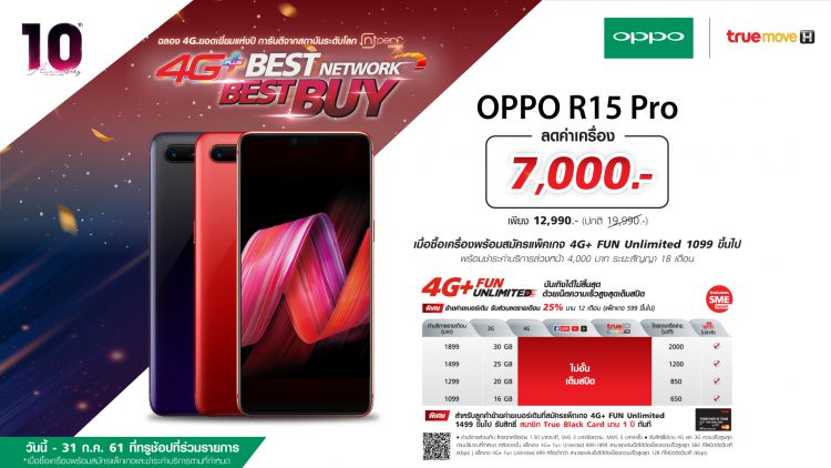 และอีกหนึ่งโปรจัดหนักสำหรับสมาร์ทโฟนเรือธงอย่าง OPPO R15 Pro มอบส่วนลดสูงสุดถึง 7,000 บาท จาก 19,990 บาท เหลือเพียง 12,990 บาท เมื่อซื้อเครื่องพร้อมแพ็กเกจ True Move สามารถสอบถามรายละเอียดเพิ่มเติมได้ที่ True Move Shop วันนี้ – 31 ก.ค. 61 นี้เท่านั้น!!