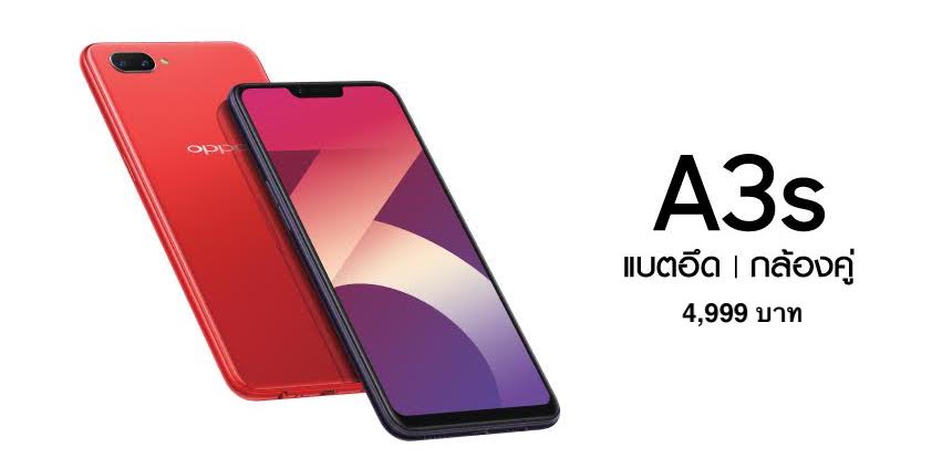เมื่อไม่นานมานี้ OPPO เพิ่งได้เปิดตัวสมาร์ทโฟนสุดพรีเมี่ยมรุ่น OPPO FIND X ที่ได้รับเสียงตอบรับจากผู้คนอย่างดีเยี่ยม ไม่ว่าจะเป็นเรื่องการพัฒนาที่ OPPO ได้ทำให้เป็นที่จับตามอง หรือคุณภาพที่จัดเต็ม รวมไปถึงราคาที่น่าสนใจ สามารถจับต้องได้ ซึ่งเป็นสิ่งที่ผู้บริโภคต้องการ ไม่เพียงเท่านั้น OPPO ก็ยังปล่อยรุ่นจิ๋วไฟแรงในราคาย่อมเยาว์ กับ OPPO A3s ที่ให้คุณสมบัติแบบจัดเต็มด้วยราคาที่ถูกใจใครหลายคนอย่างแน่นอน OPPO A3s ที่จะวางจำหน่ายมีให้เลือกสองสี คือ สีแดงที่ทำให้ดูมีสไตล์และคลาสสิค กับสีม่วงเข้มที่ดูลึกลับแต่ทันสมัย ในราคา 4,999 บาท