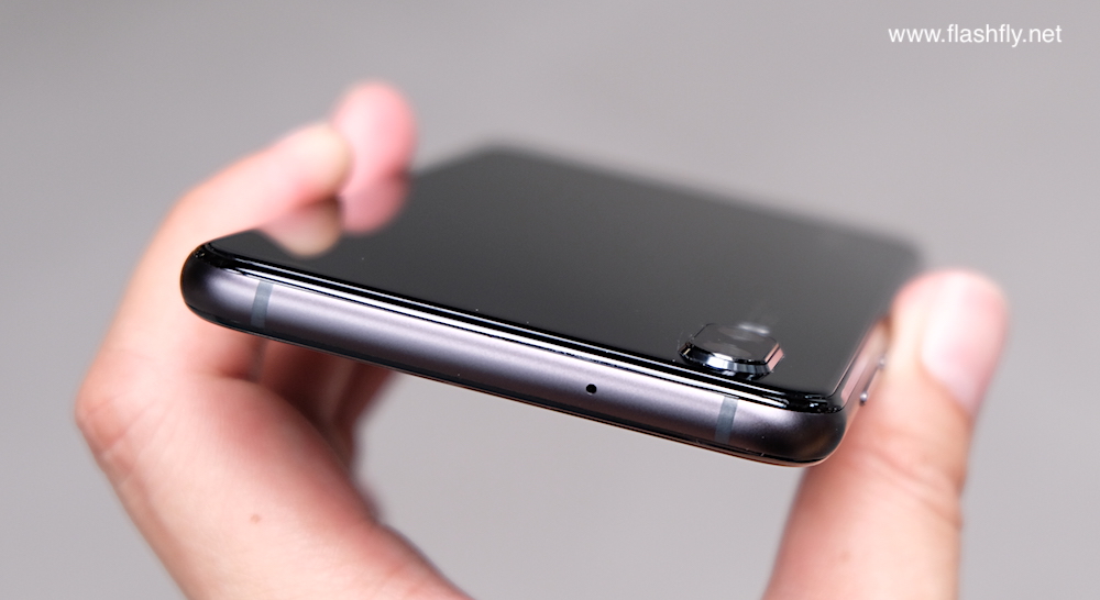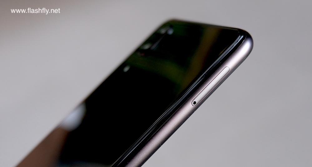 ด้านข้างมีถาดใส่ซิมการ์ด รองรับ 2 ซิม แบบนาโนซิม แต่ไม่มีถาดใส่การ์ดความจำภายนอก เพราะภายในก็ให้มาถึง 128GB