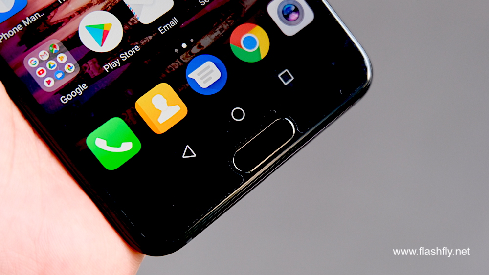ใต้จอแสดงผลติดตั้งปุ่มโฮมมาให้ด้วย พร้อมฝังเซ็นเซอร์สแกนลายนิ้วมือไว้บนปุ่มโฮม ซึ่งทำให้ขอบจอด้านล่างมีความหนากว่าด้านอื่น แต่ทีมออกแบบของ HUAWEI เชื่อว่าการวางเซ็นเซอร์สแกนลายนิ้วมือไว้ในตำแหน่งนี้ จะใช้งานได้สะดวกกว่าติดตั้งไว้ที่ด้านหลัง