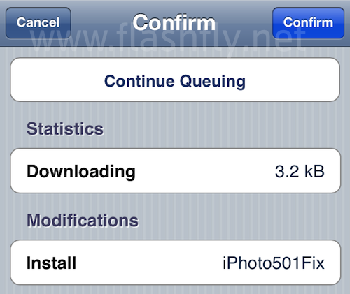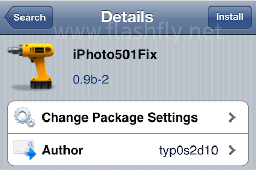 - จากนั้นเปิด Cydia แล้วไปเสริชหา iPhoto501Fix