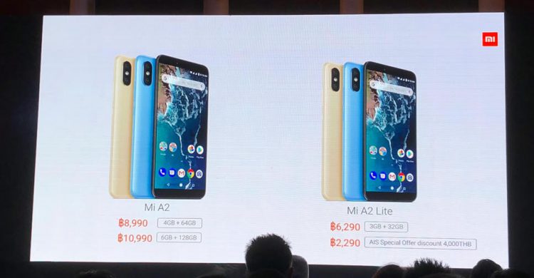 Xiaomi จัดงานเปิดตัวสมาร์ทโฟน Mi A2 และ Mi A2 Lite ในประเทศไทยอย่างทางการ ในช่วงเย็นของวันที่ 3 สิงหาคม พร้อมประกาศวางจำหน่ายทันทีผ่านช่องทางออนไลน์ ส่วนออฟไลน์เริ่มจำหน่ายตั้งแต่วันที่ 4 สิงหาคม เป็นต้นไป