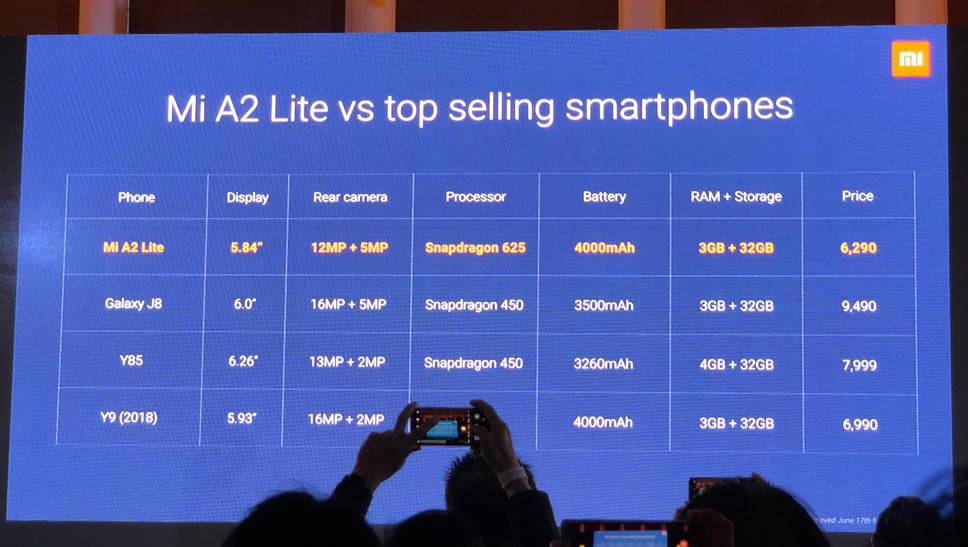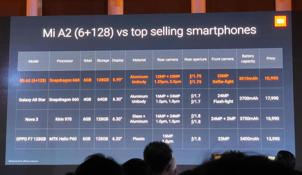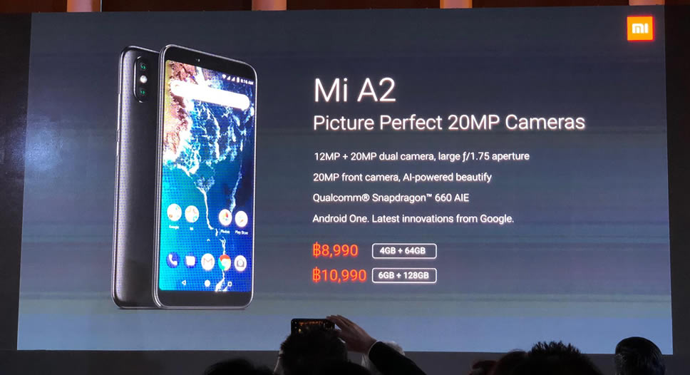 Xiaomi Mi A2 Lite รุ่น RAM 4GB จับคู่กับ ROM 64GB วางจำหน่ายในราคา 8,990 บาท และรุ่น RAM 6GB จับคู่กับ ROM 128GB วางจำหน่ายในราคา 10,990 บาท