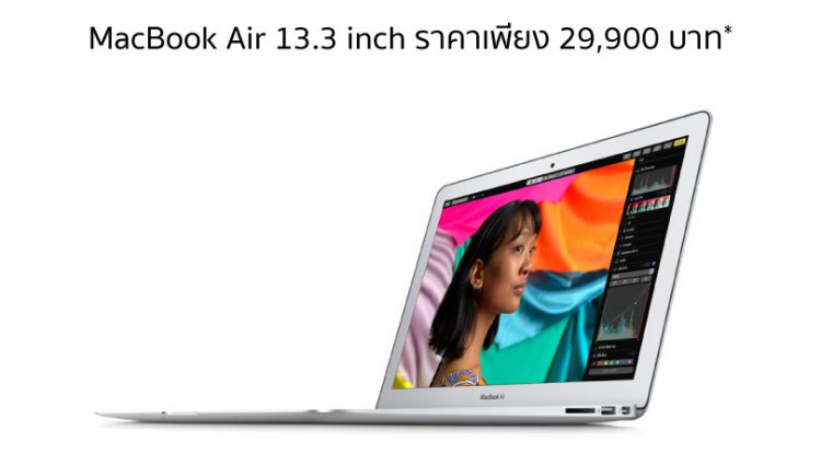 พิเศษสำหรับลูกค้าที่ซื้อ MacBook Air ความจุ 128 GB ประหยัดทันที 5,000 บาท เหลือเพียง 30,900 บาท จากราคาปกติ 35,900 บาท พร้อมรับทันที Voucher ส่วนลดสำหรับซื้อ Accessories for Mac รุ่นที่ร่วมรายการ หรือ AirPods มูลค่า 1,000 บาท