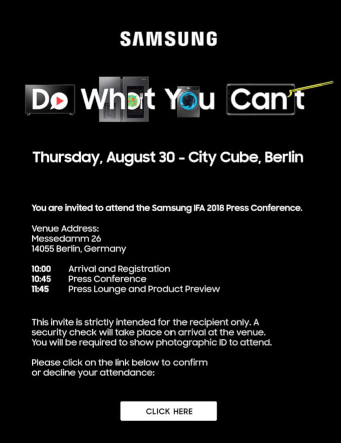 อย่างที่ทราบกันดีว่า Samsung จะเปิดตัวสมาร์ทโฟนระดับไฮเอนด์ Galaxy Note 9 ในวันที่ 9 สิงหาคมนี้ และจะเปิดรับจองทันทีในวันที่ 10 สิงหาคม ทั้งในประเทศไทย และประเทศอื่นๆ ที่ Samsung จัดให้อยู่ในกลุ่มแรก อย่างไรก็ตาม ในวันที่ 30 สิงหาคม หรือปลายเดือนนี้ Samsung ยังมีแผนเปิดตัวผลิตภัณฑ์ใหม่ด้วย