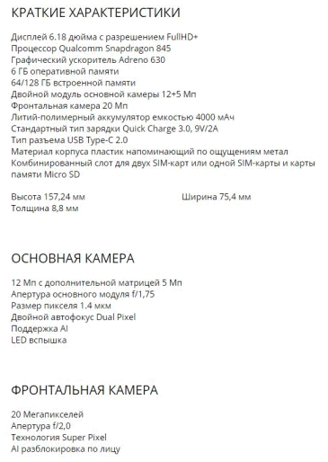 Pocophone F1 ถูกอ้างว่าจะมากับชิปประมวลผล Qualcomm Snapdragon 845 จีพียู Adreno 630 ความจำ RAM 6GB จับคู่กับ ROM 64GB หรือ RAM 8GB จับคู่กับ ROM 128GB รองรับการ์ด microSD ใช้จอแสดงผล Full HD+ ขนาด 6.18 นิ้ว (บางแห่งอ้างว่ามีขนาด 5.99 นิ้ว) กล้องคู่หลัง 12 + 5 ล้านพิกเซล กล้องเซลฟี่ 20 ล้านพิกเซล
