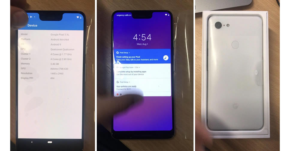 Google Pixel 3 XL มาพร้อมระบบปฏิบัติการ Android 9 Pie ใช้ชิปประมวลผล Qualcomm Snapdragon 845 ความจำ RAM 4GB จอแสดงผล 1140 x 2960 พิกเซล และคาดว่าจะเปิดตัวพร้อมกับ Pixel 3 ในช่วงต้นเดือนตุลาคมนี้