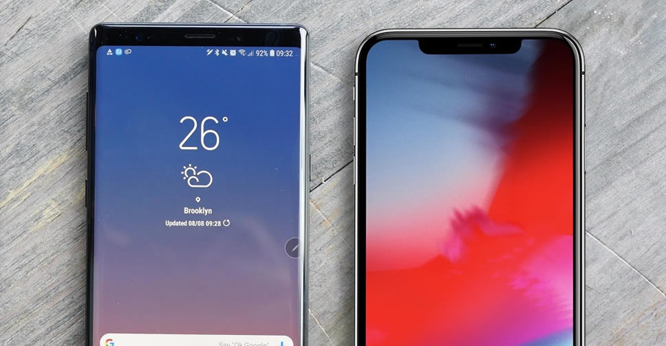 Samsung Galaxy Note 9 ยังคงได้รับการออกแบบคล้ายกับเรือธงรุ่นก่อนอย่าง Galaxy Note 8 แต่มีขนาดจอแสดงผลใหญ่ขึ้น โดยใช้จอแสดงผล Super AMOLED (2960 x 1440 พิกเซล) ขนาด 6.4 นิ้ว อย่างไรก็ตาม มีข่าวลือว่า Apple จะเปิดตัว iPhone ที่มีจอแสดงผลใหญ่กว่า นั่นก็คือ iPhone X Plus หรือ iPhone XS Plus ซึ่งถูกคาดหวังว่าจะใช้จอแสดงผล OLED ขนาด 6.5 นิ้ว