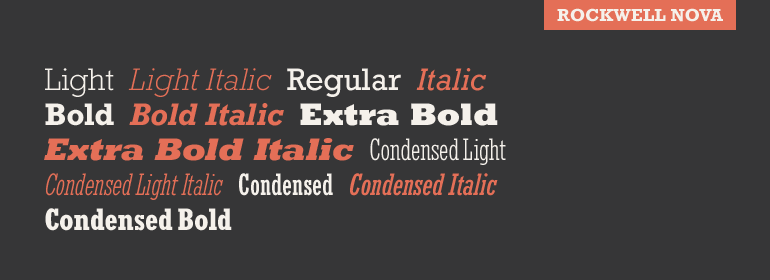 จะเกิดอะไรขึ้นถ้าคุณเอาฟอนต์ที่ไม่มีเชิง (sans serif) อย่างเช่น Futura มา แล้วใส่เชิง (serif) เพิ่มเติมเข้าไป นักออกแบบที่ Monotype ตั้งคำถามนี้เมื่อปี ค.ศ. 1934 และคำตอบที่ได้คือ ฟอนต์ Rockwell ซึ่งได้รับความนิยมอย่างกว้างขวางตลอดช่วงหลายทศวรรษที่ผ่านมาสำหรับใช้เขียนชื่อเรื่องและชื่อแบรนด์ต่างๆ และบางครั้งอาจใช้ในข้อความที่จัดเรียงเป็นระเบียบ ดูสวยสง่า หรืออาจมีการปรับเพิ่มขนาดสำหรับใช้เป็นหัวข้อข่าวหรือบทความที่ดูเข้มแข็ง ทรงอิทธิพล ฟอนต์นี้เหมาะสำหรับใช้งานในเกือบทุกกรณี โดยเฉพาะอย่างยิ่งเมื่อคุณใช้รูปแบบตัวผอมสำหรับพื้นที่ที่จำกัด