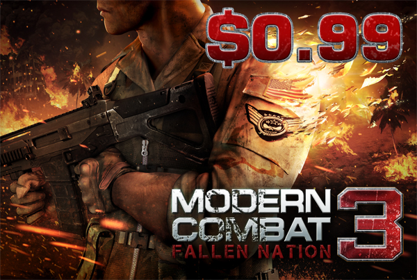สำหรับเพื่อนๆคนไหนที่รอเกม Modern Combat 3: Fallen Nation แบบราคาย่อมเยาอยู่ละก็เวลานั้นมาถึงแล้ว โดยทาง Gameloft จัดให้ด้วยราคาเบาๆเพียง $0.99 หรือ 30 บาทเท่านั้น เพื่อเป็นการฉลองวันวางจำหน่าย “The new iPad” แท็บเล็ตที่มีหน้าจอคมชัดที่สุดในโลกจาก Apple นั่นเอง นอกจากนี้ยังยกทัพเกมดังอื่นๆมาลดราคากันอีกเพียบ ติดตามทางด้านล่างกันได้เลย