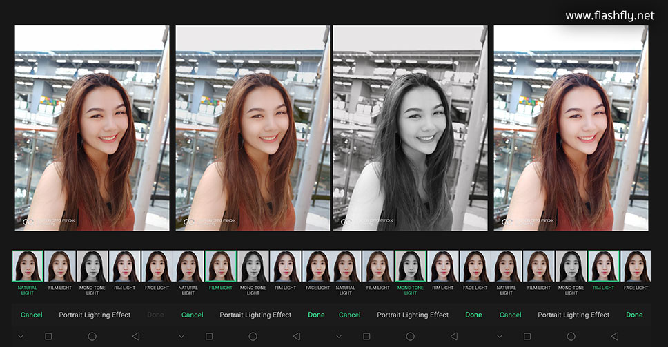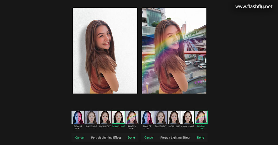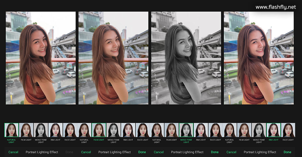 โดยเมื่อถ่ายเราสามารถกลับมาแก้ไขภาพถ่ายเลือกสภาพแสงอื่นได้ใหม่ตลอดเวลาอีกด้วยโดยการกดปุ่มไอค่อนรูปคนที่มุมขวาล่างของภาพ แถมยังมีให้เลือกมากกว่าในโหมดกล้องนั่นคือ แสงเฉพาะที่(Local Light)เปลี่ยนฉากหลังเป็นสีขาวดำและแสงสายรุ้ง (Rainbow Light) เพิ่มความสดใสในภาพ โดยโหมดแสงทั้ง 2 แบบนี้เลือกเพิ่มได้กับภาพถ่าย Portrait Mode ทั้งกล้องหน้าและกล้องหลังอีกด้วย